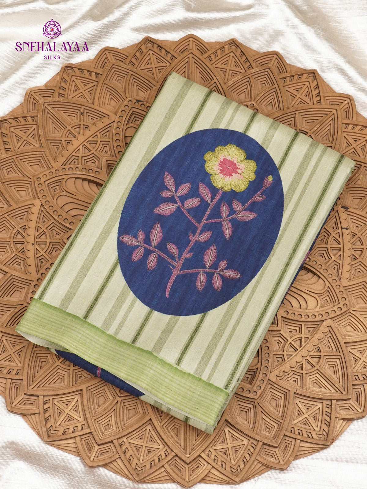 A tussar contemporary-style saree blends the rich, natural texture of tussar silk with modern motifs and minimalist elegance.