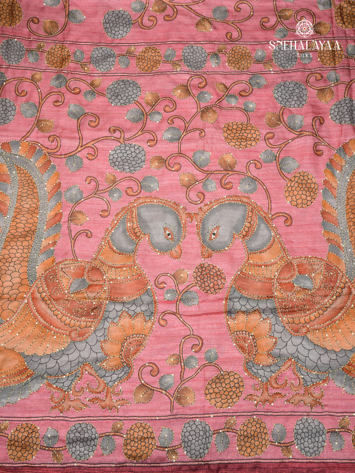 A Tussar embroidery saree blends the rich, natural texture of Tussar silk with intricate handcrafted motifs for an elegant, earthy charm. Its subtle sheen and detailed needlework make it perfect for both festive and formal occasions.