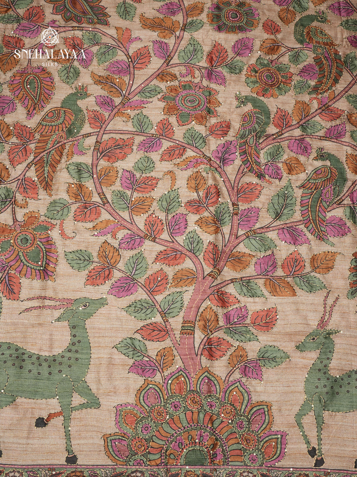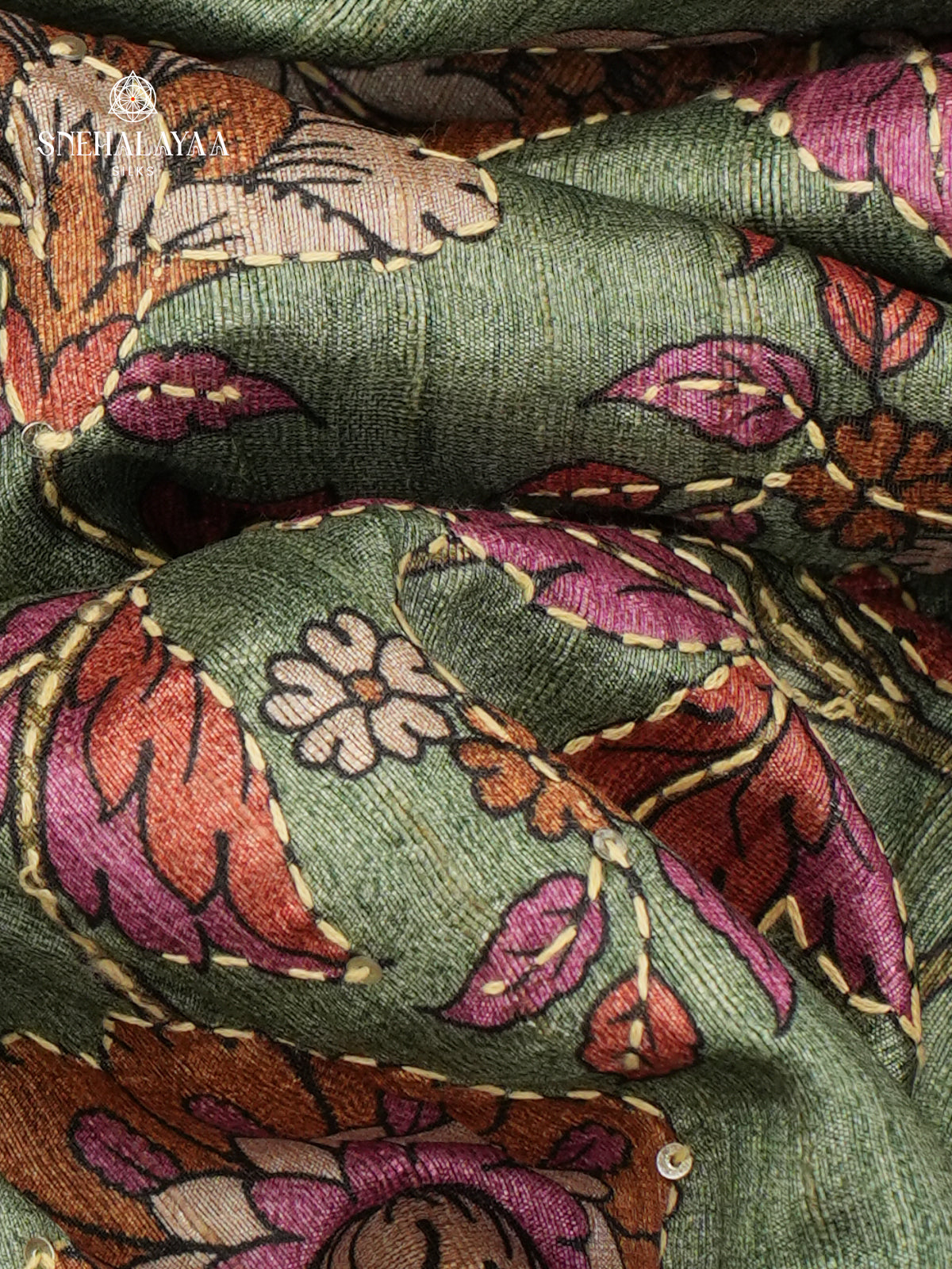 A Tussar embroidery saree showcases the natural texture and earthy elegance of Tussar silk enhanced with intricate handcrafted embroidery. It offers a refined, graceful look ideal for festive occasions and elegant daytime wear.