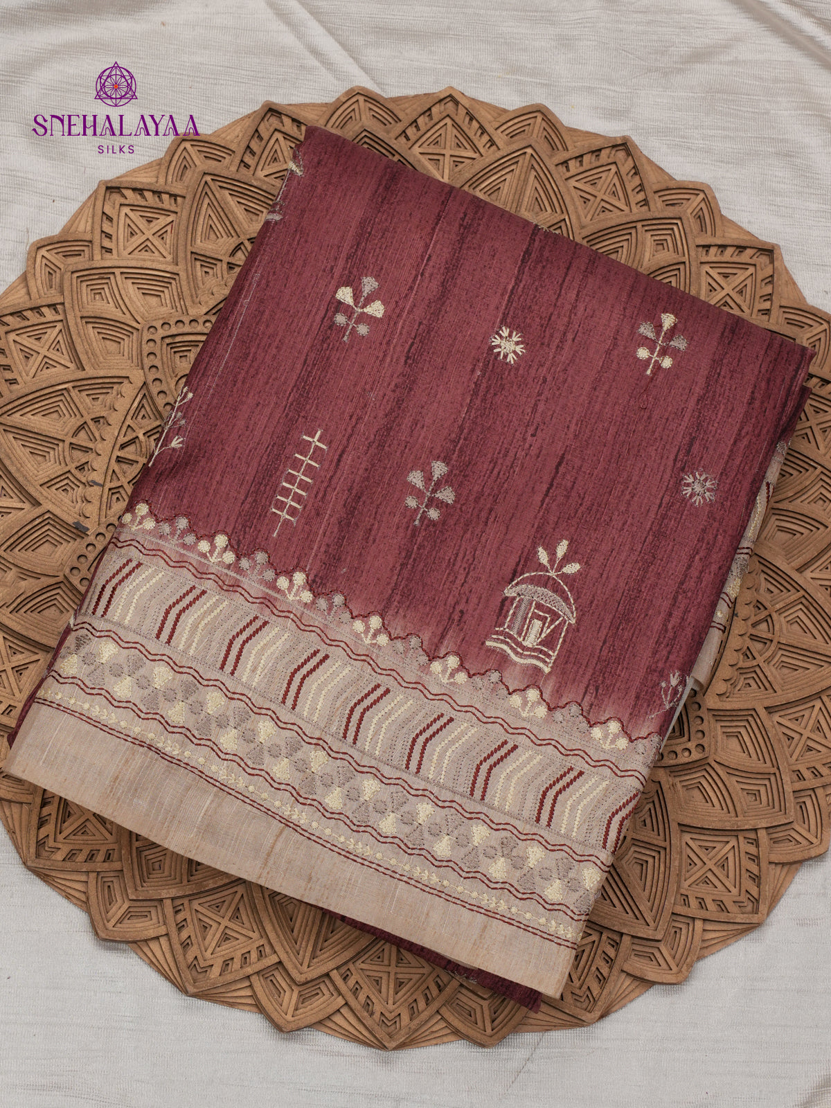 Brown Tussar Embroidery Saree