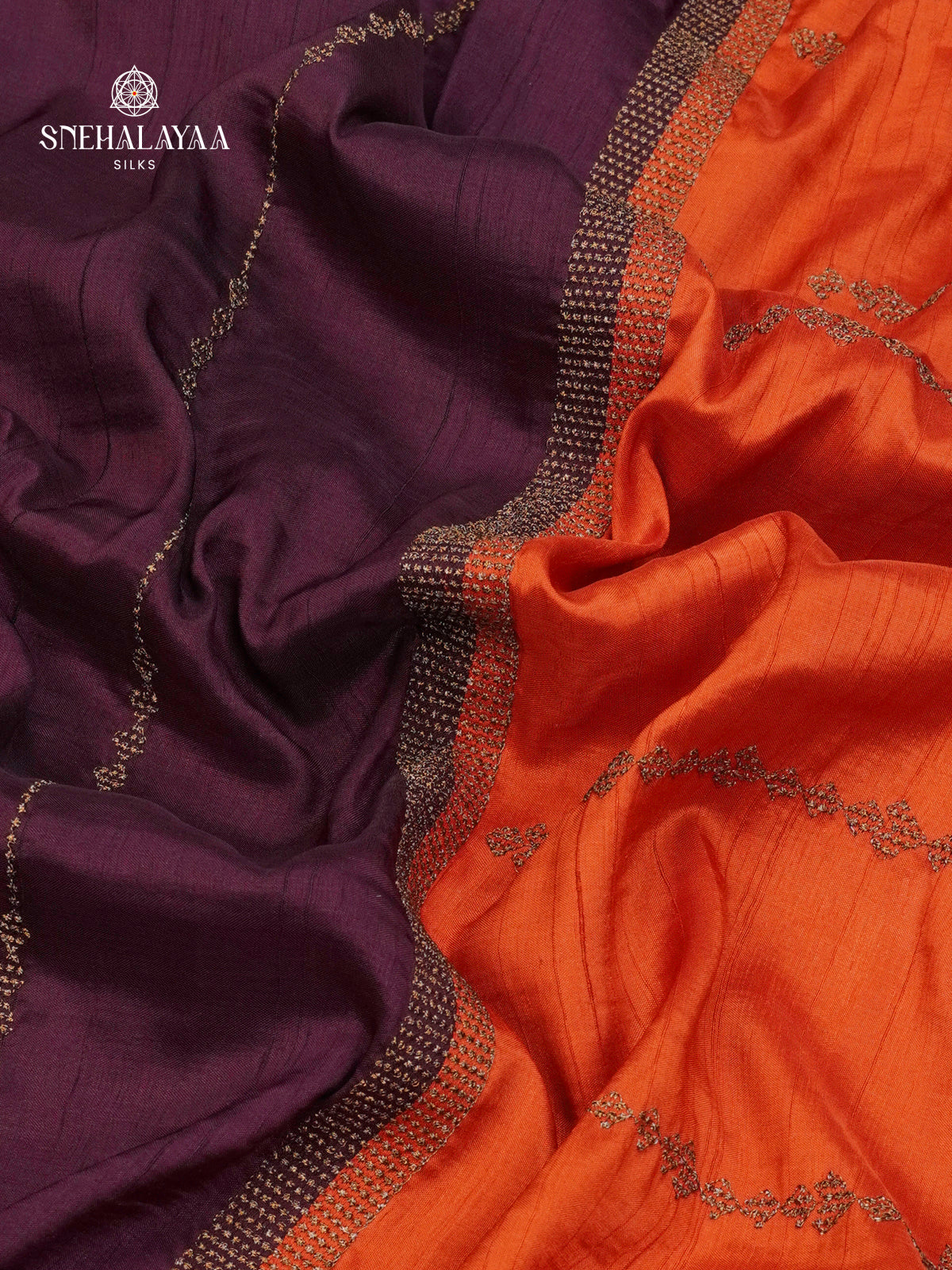 Aubergine Soft Tussar Embroidery Saree