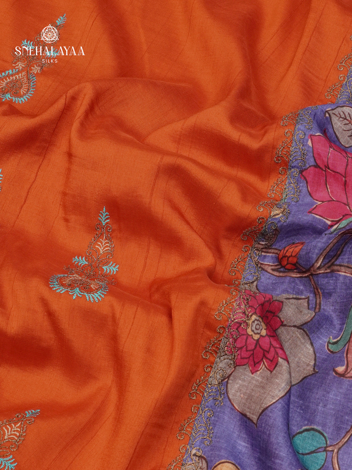 Rust Orange Soft Tussar Embroidery Saree