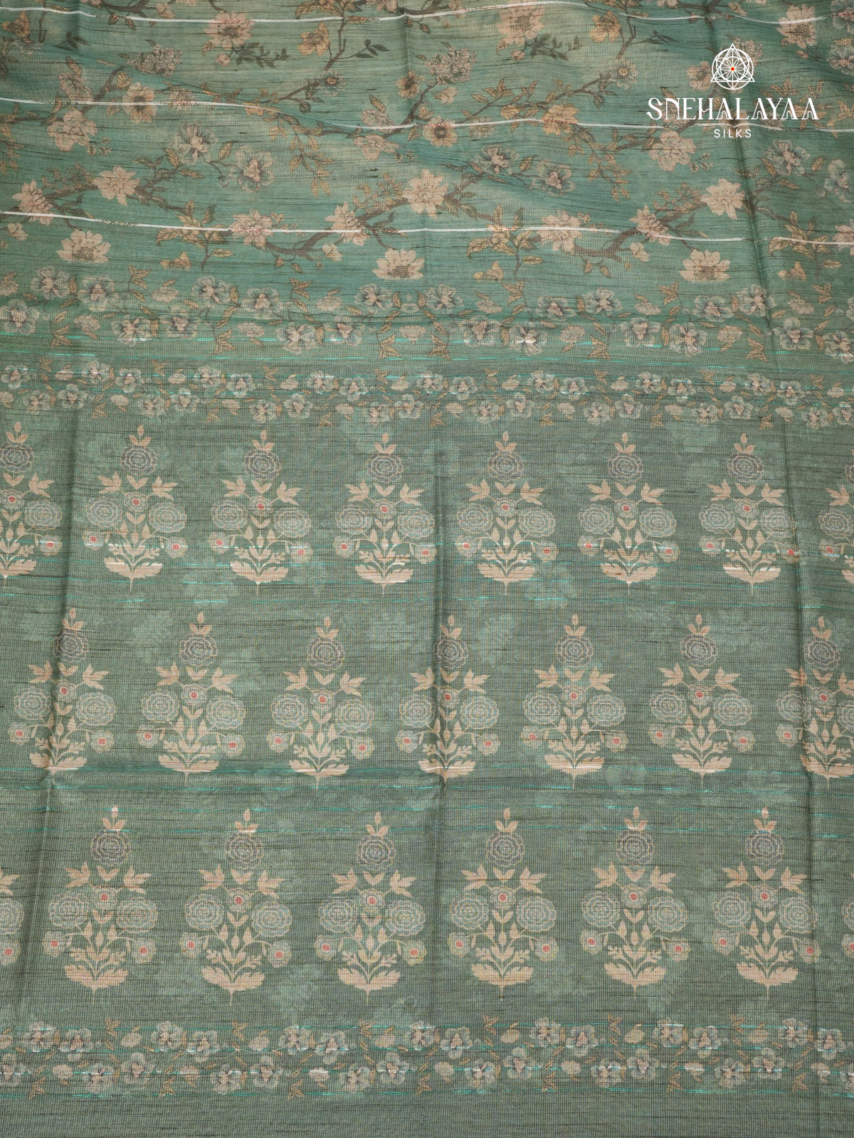 Beautifully printed Tussar with blooming floral patterns that stand out. Its subtle sheen and breathable feel make it a versatile wardrobe favorite.