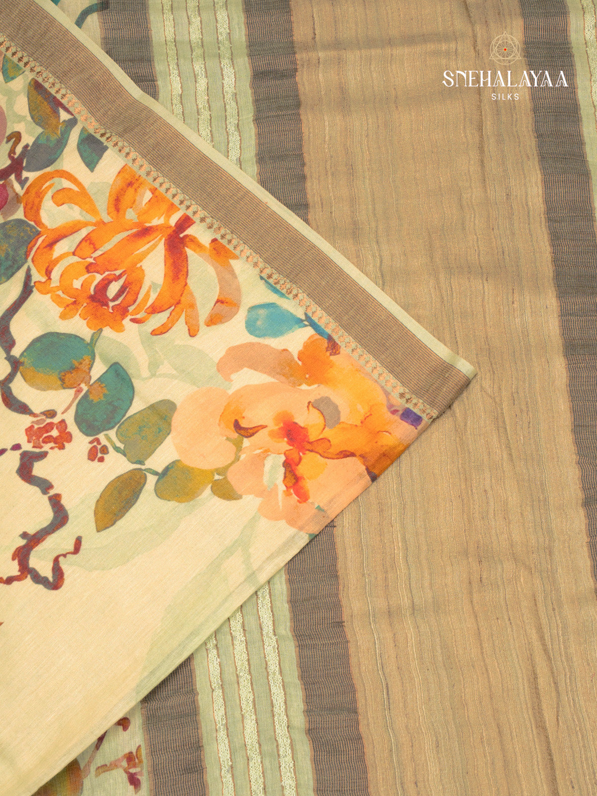 This off-white tussar saree is such a classic and graceful choice! The soft, neutral tone of off-white combined with the rich texture of tussar silk gives it an understated elegance that works beautifully for any formal or semi-formal occasion.