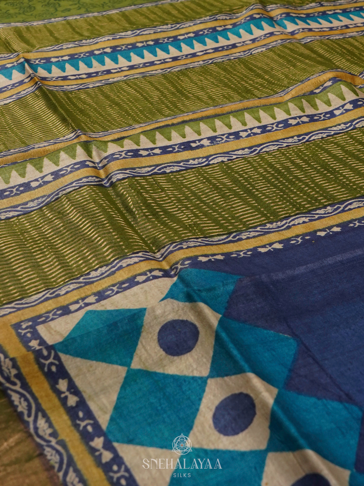 A Tussar saree features a natural golden glow and a rich, textured weave from wild silk. It reflects timeless elegance with an earthy, handcrafted appeal.