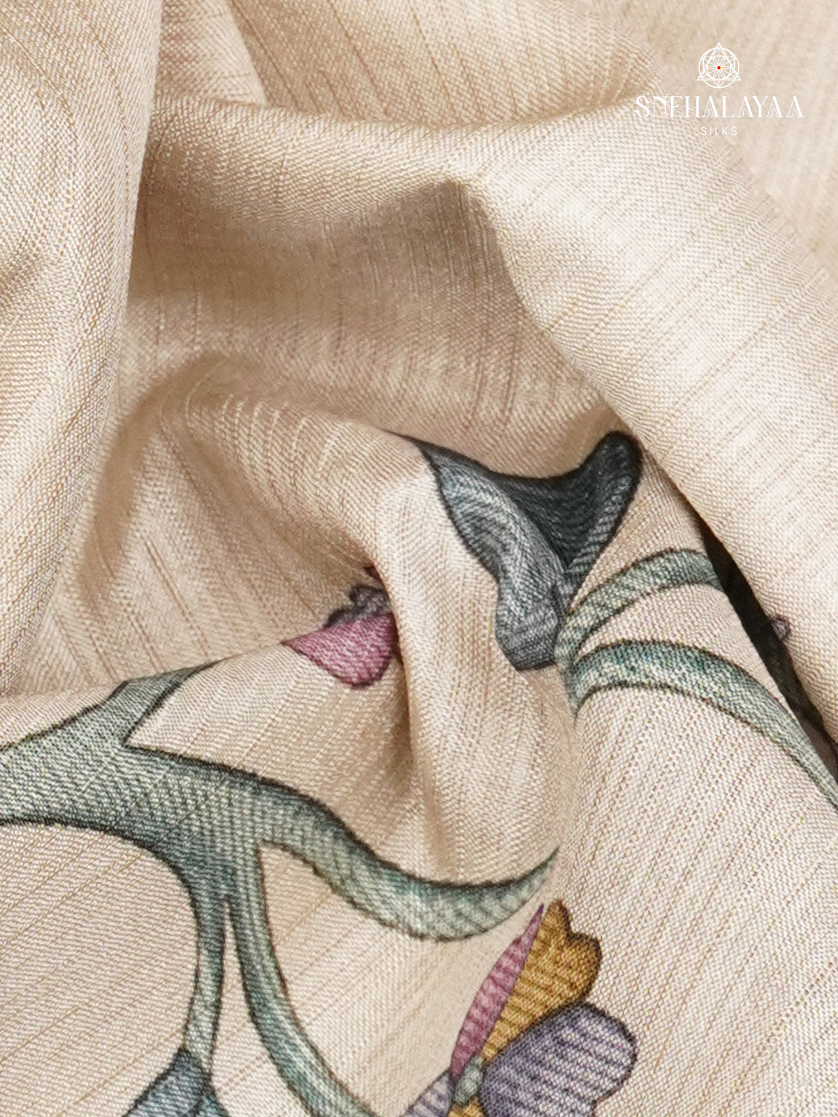 A tussar contemporary-style saree blends the rich, natural texture of tussar silk with modern motifs and minimalist elegance.