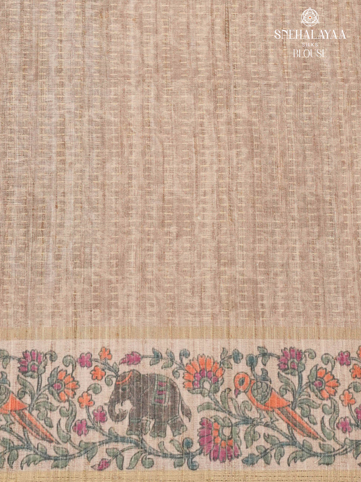 Beautifully printed Tussar with blooming floral patterns that stand out. Its subtle sheen and breathable feel make it a versatile wardrobe favorite.