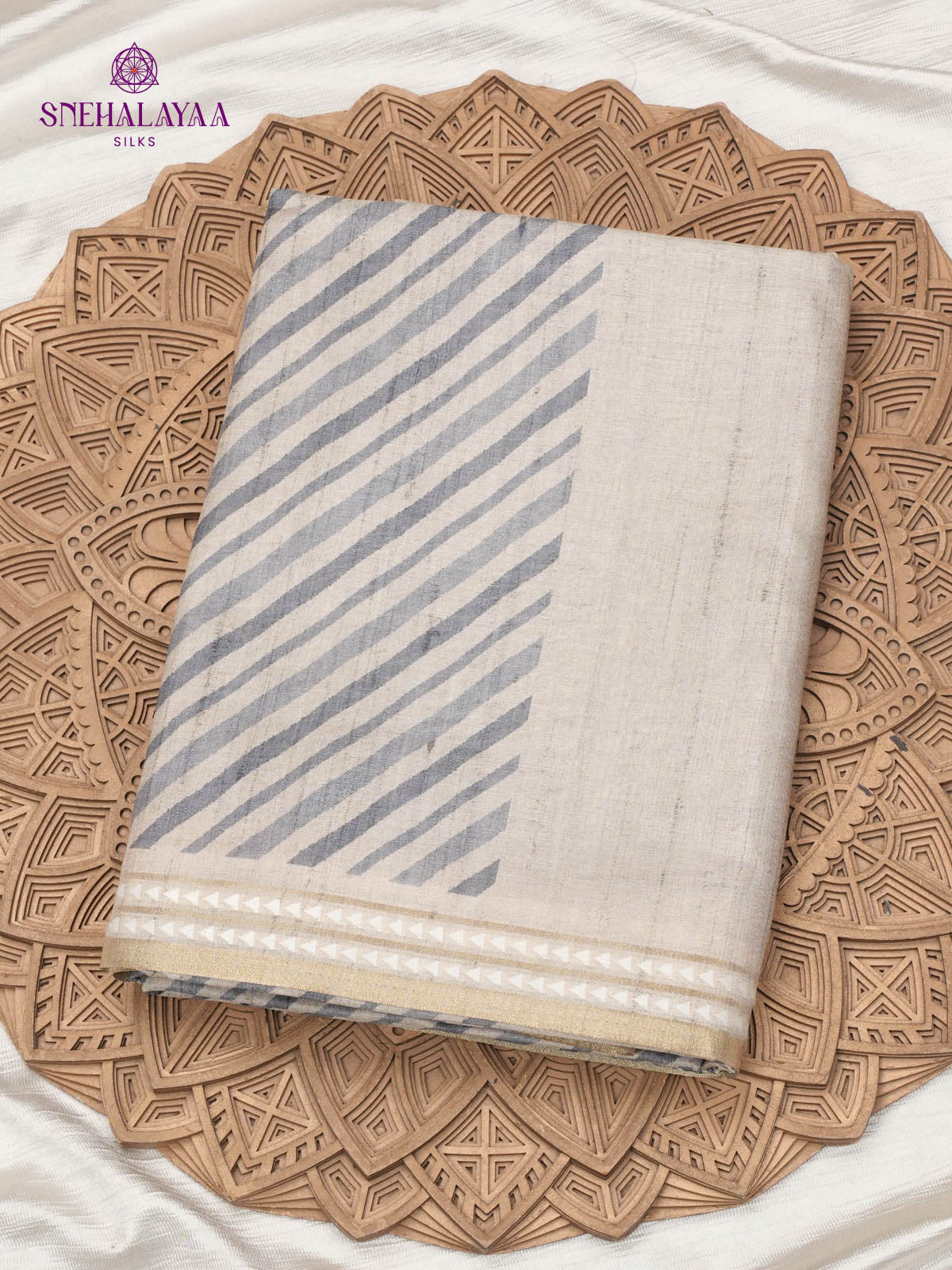 Off White Printed Tussar Saree