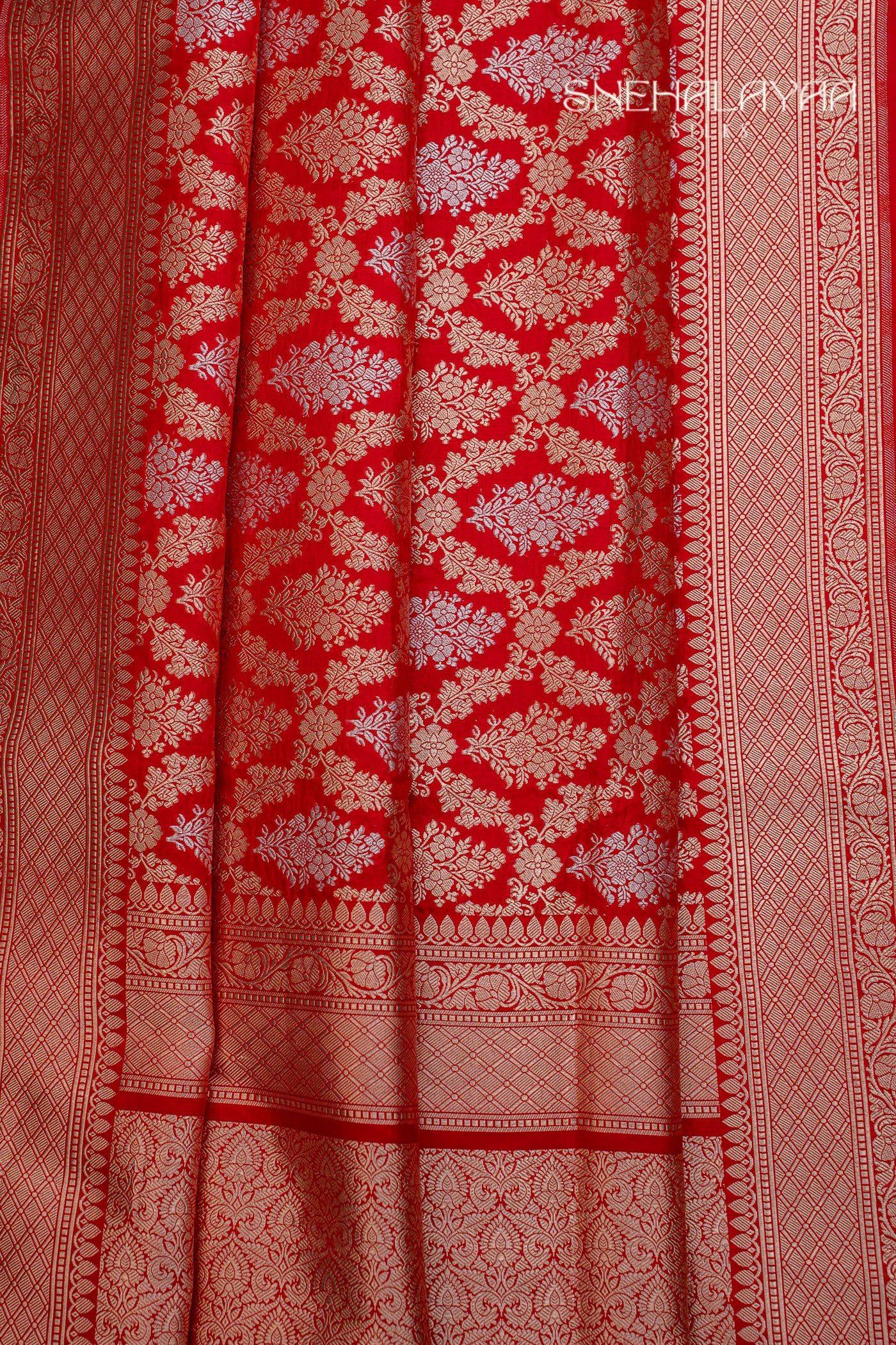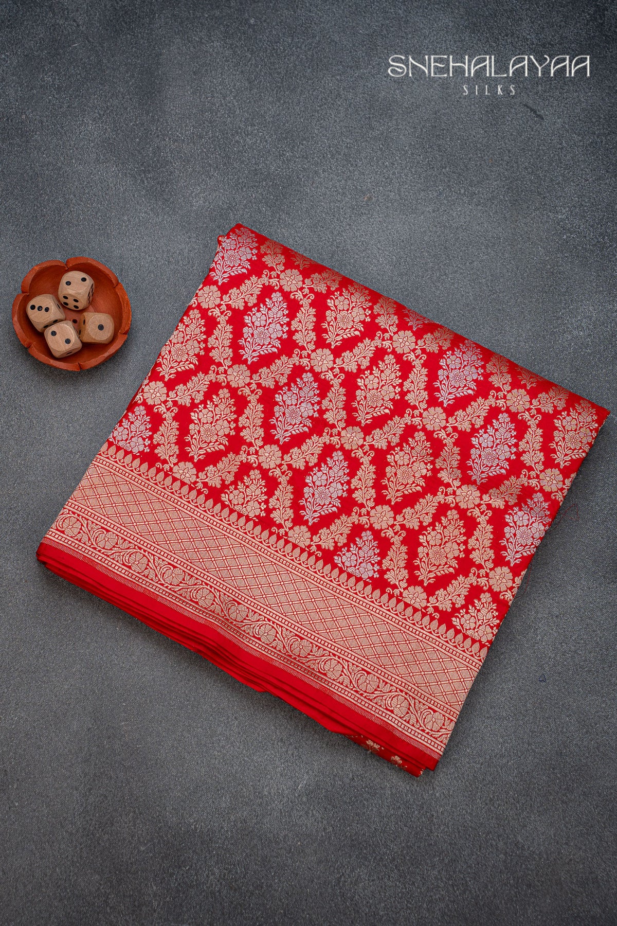 This saree is made from high-quality silk, this saree is renowned for its rich texture and luxurious feel. Banaras silk is known for its durability and lustrous finish, making it a prized choice for traditional attire.