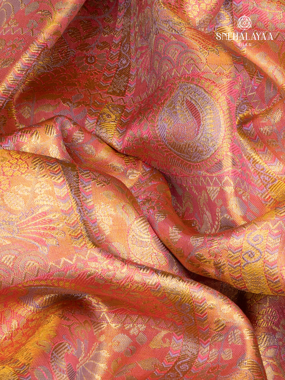 Kanjivaram silk saree is adorned with elegant floral motifs that exude timeless beauty. The rich contrast pallu enhances its allure, making it ideal for festive and special occasions.
