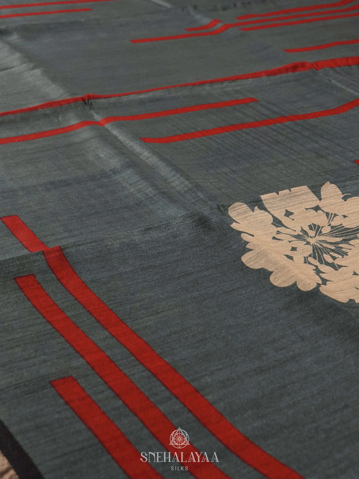 A luxurious Munga Tussar saree adorned with elegant prints for a timeless ethnic look. Its natural sheen and soft texture bring effortless grace to every occasion.