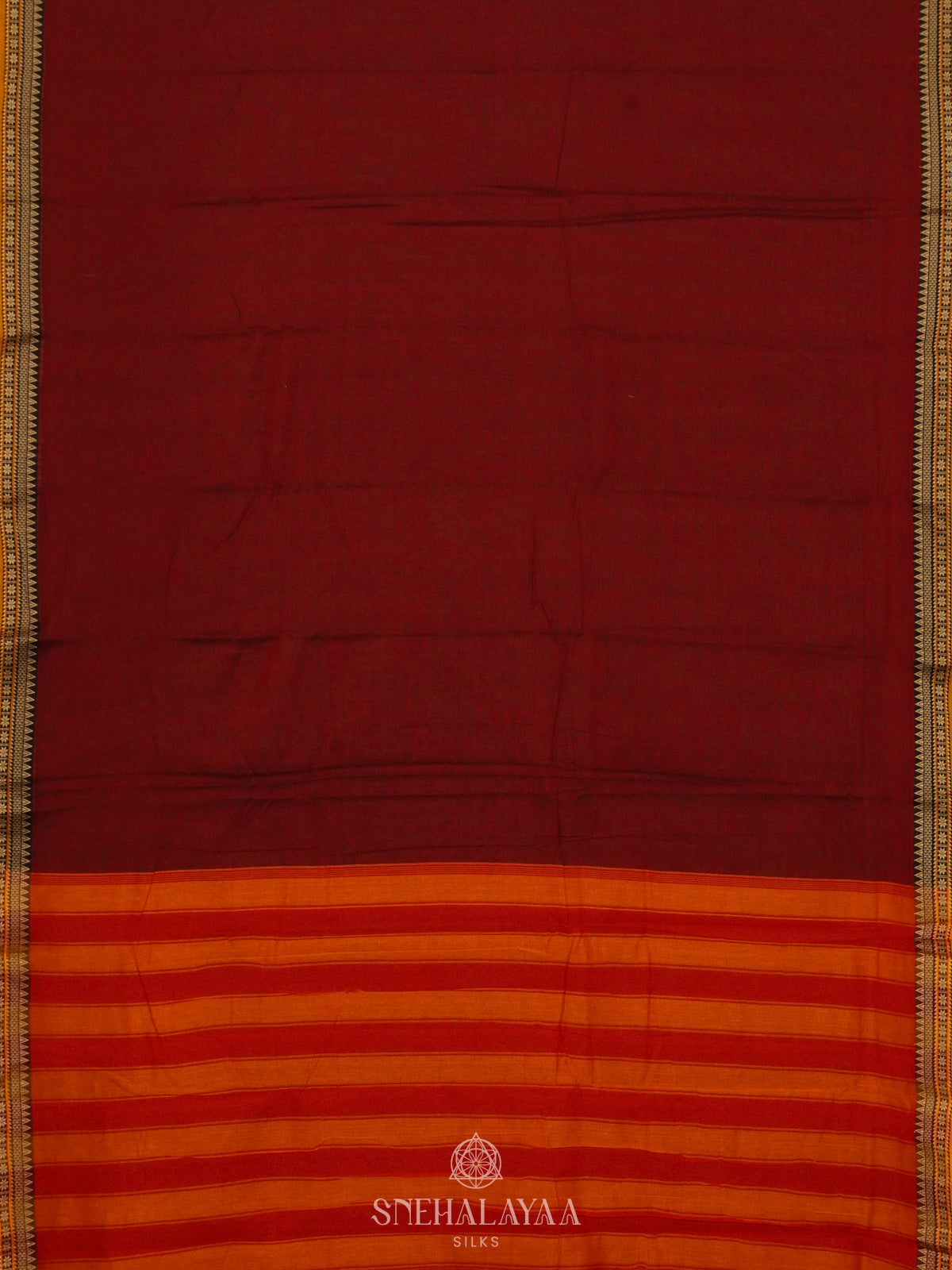 Maroon Narayanpet Cotton Saree without Blouse