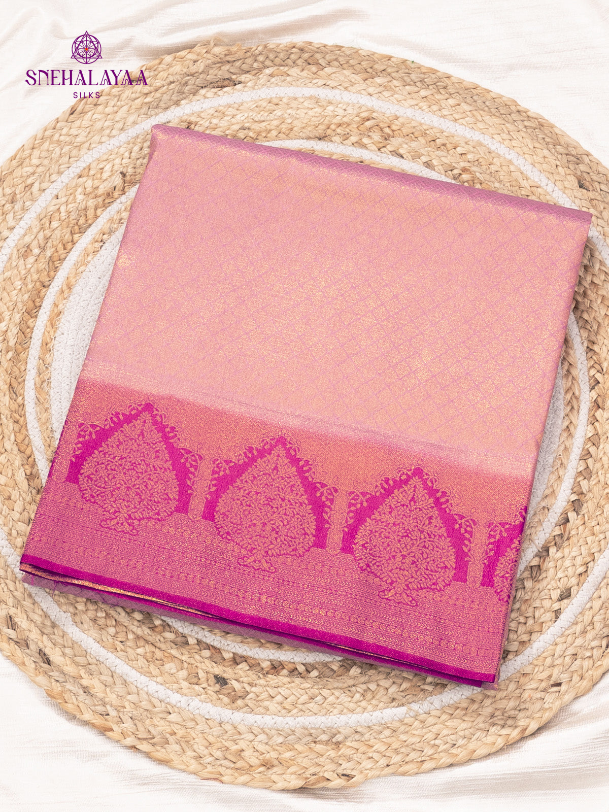 Elegant Peach Semi Soft Silk Saree featuring a rich contrast border for a graceful look. Perfect blend of subtle charm and timeless sophistication.