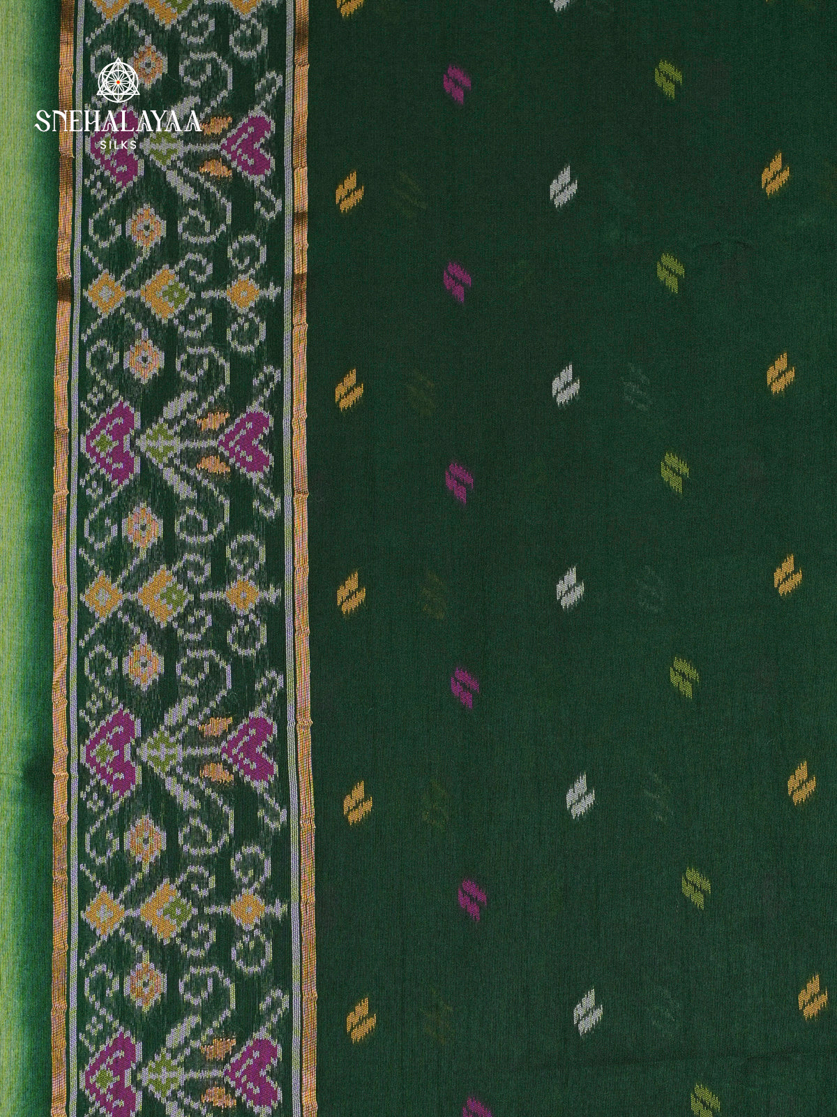 Gracefully handwoven Ikat Silk Saree featuring a striking contrast border and pallu a perfect blend of tradition and style