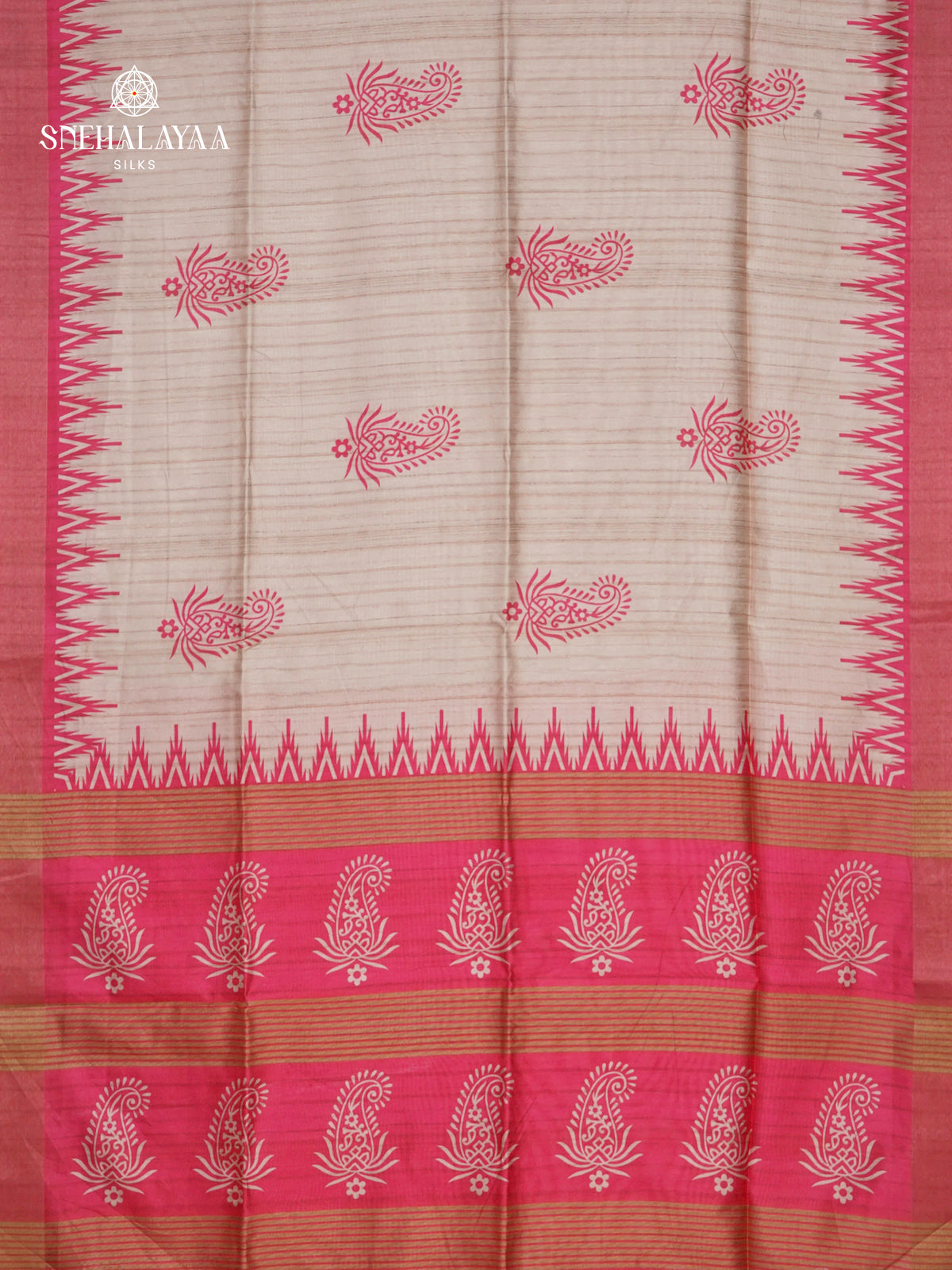 Beige With Pink Border Tussar Saree