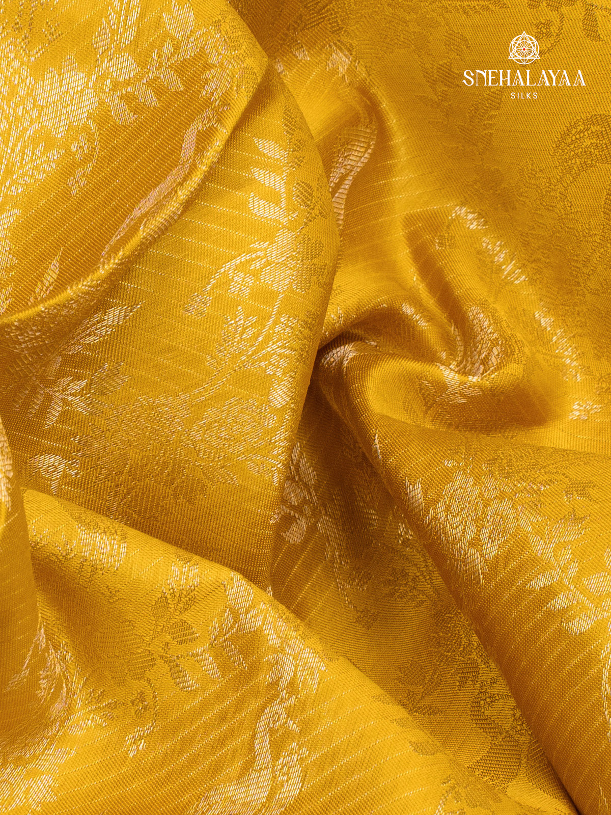 Kanjivaram silk featuring delicate floral motifs woven onto the body. Its classic look is completed with a dramatically contrasting border and pallu