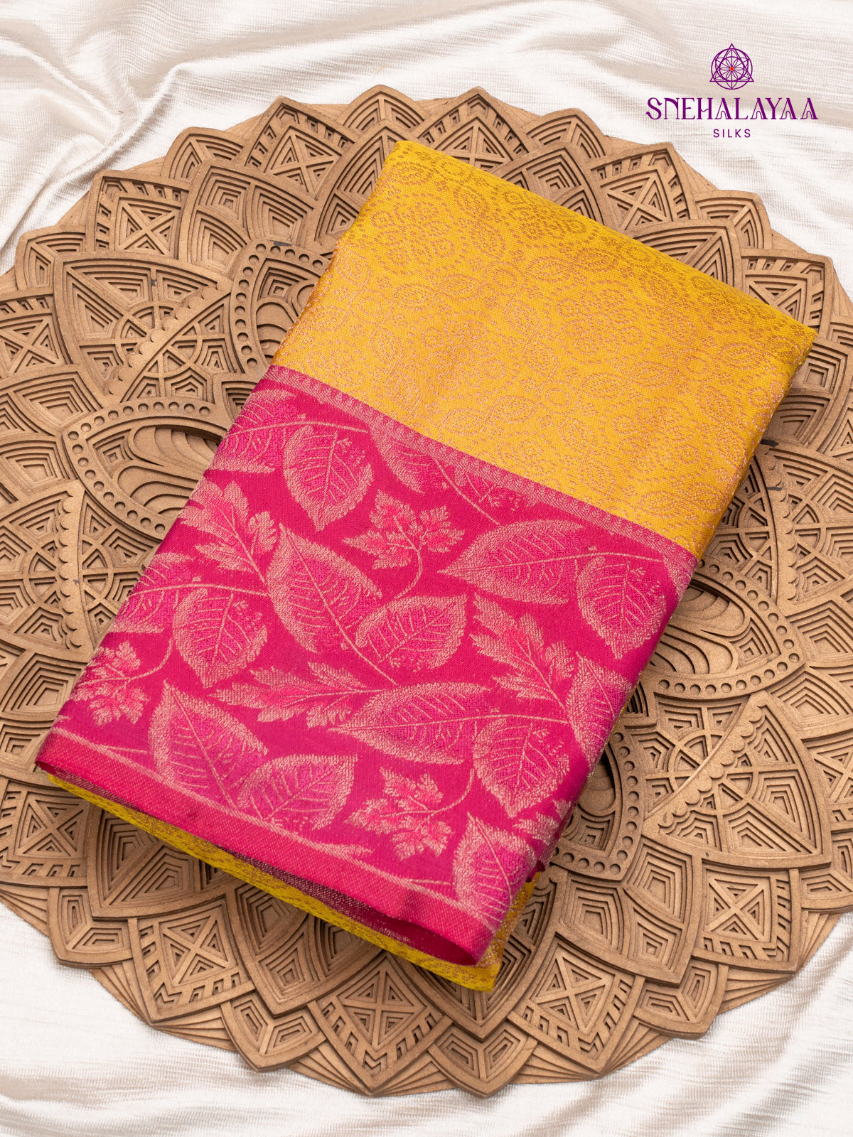 Kanjivaram silk featuring delicate floral motifs on the body. Its classic look is completed with a dramatically contrasting border and pallu